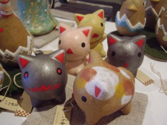 「小川ゆうこ」さんのネコさん 2009年8月に横浜赤レンガ倉庫で開催された「第11回あ〜てぃすとマーケット」から 連れ帰ったねこさんです。手作り動物マラカスを創られています。 小さめのねこさんですが、ちゃ〜んとマラカスなんです(=^m^=)シャカシャカします。