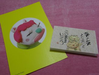 「深井和子」さんのネコさん 2009年8月に深井和子さんのサイトの会員特典で頂いたねこさんです。 バッサバサまつげのねこさんの絵はがきと、ニコニコねこさんのカード。