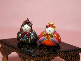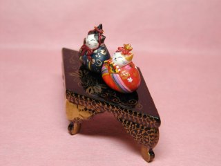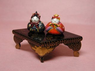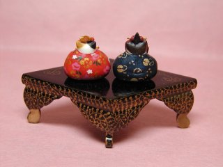 ネコさん達が乗っている台は古いお雛様の菱餅台。