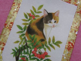 「天野千恵美」さんのネコさん 2009年11月に東京谷中、ギャラリー猫町で開催された「粋猫〜風呂敷・ぽち袋〜展」 から連れ帰ったねこさんのポチ袋。天野千恵美さんの繊細な猫さんが描かれたポチ袋。 ポチ袋自体にも金があしらわれていて、とっても豪華な雰囲気です。