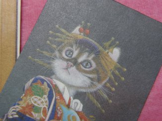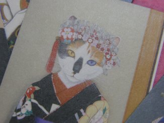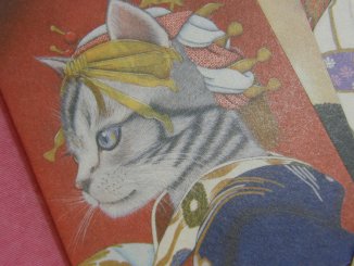 「みゆき」さんのネコさん 2009年11月に東京谷中、ギャラリー猫町で開催された「粋猫〜風呂敷・ぽち袋〜展」 から連れ帰ったねこさんのポチ袋。「工房レトロ」の和福猫ブランド。 日本伝統の歌舞伎や武将、お姫様などの美しいねこさんたち。