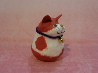 「吉田道明」さんのネコさん 2009年9月に三重県伊勢で開催された「来る福招き猫まつり」から連れ帰った招き猫さん。 起きあがりこぼしになっています。招いているというよりは、「いやぁ〜(^^ゞ」って頭掻いてる感じの 頼りなさげなお顔付きが気に入りました(=^m^=)
