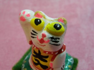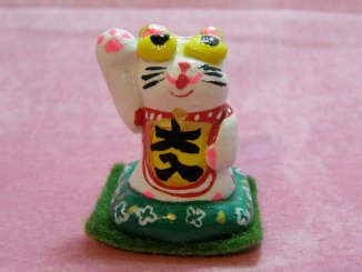 「稲田敦」さんのネコさん 2010年1月に東京・品川で開催された「新春開運招福福ねこ屋」から連れ帰った招き猫さん。 めちゃめちゃお目出度い(=^m^=)大入りの招き猫さん。