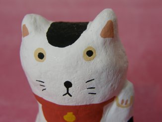 「倉鋪敦子」さんのネコさん 2010年3月に東京・吉祥寺「横丁ギャラリー」で開催された「ねこだらけ展」から連れ帰ったねこさん。 島根県松江の工房「サクラストア」でイラスト・オブジェをご夫婦で制作されています。 このとぼけたお顔に惹かれました(=^m^=)