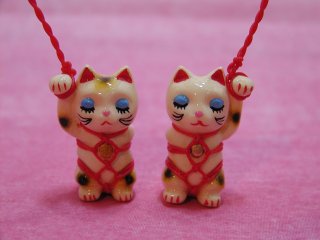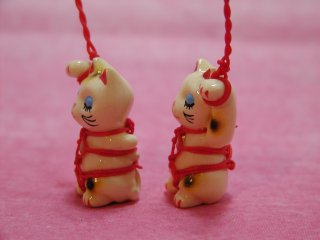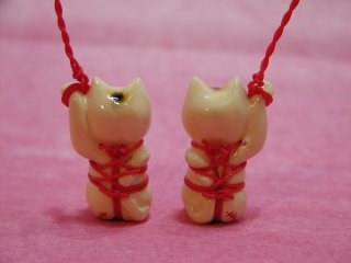 「奇譚屋」さんのネコさん 2010年5月に東京ビックサイトで開催された「デザインフェスティバル」から連れ帰ったねこさん。 奇譚屋デザインファクトリーさんの招き猫さん。 縛られてます(=^m^=) 白の他に黒、赤、金がありました。
