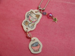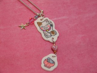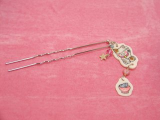 「松風直美」さんのネコさん 2010年来る福招き猫まつりin瀬戸で松風さんから頂いた招き猫さんかんざし。 まだ試作段階だそうで、実験台としてσ(^^)頂きました。 実際に挿してみて、絵柄の部分をもう少し伸ばした方が良いことが判明しました(=^m^=)