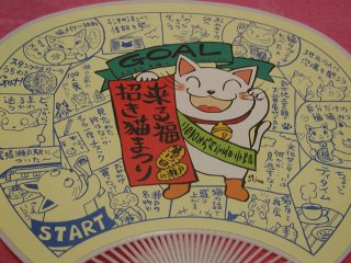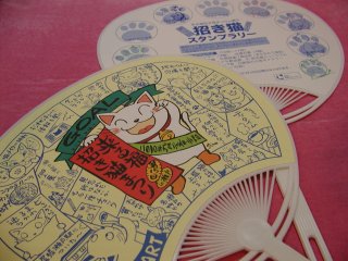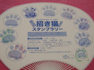 「渡辺志野」さんのネコさん2010年9月に愛知県・瀬戸で開催された「来る福招き猫まつり」から 連れ帰ったねこさん。招き猫スタンプラリーのウチワ。