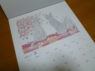 「松風直美」さんのネコさん 2010年12月に東京・品川エキュートで開催された「福ねこ屋」から 連れ帰ったねこさんカレンダー。