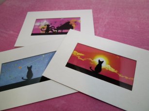 「津村満治」さんのネコさん 井の頭アートマーケッツをはじめアートマーケットで人気の「はがき工房」津村さんの 立体ポストカードのねこさんたち。ポストカードですが、そのまま飾っても素敵です。