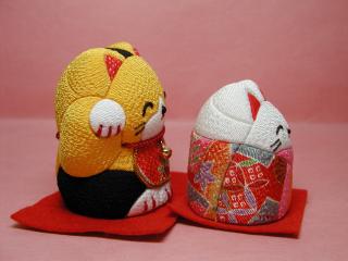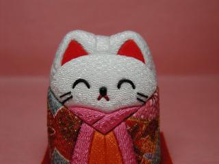 「松田雅子さん」のネコさん 2002年3月に東京中野で開催された「ア〜ト・ム〜チョ」から 連れ帰った招き猫さんです。 いつお会いしても暖かくて優しい雰囲気は健在(o^^o) 猫姫さんご本人の雰囲気そのままのネコさんです。