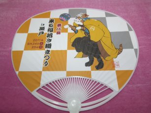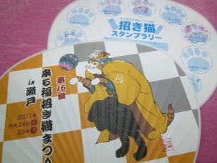 「元祖ふとねこ堂」さんのネコさん 2011年9月に愛知県瀬で開催された「来る福招き猫まつり」から連れ帰った ねこさんのウチワです。招き猫スタンプラリーのスタンプ台紙。元祖ふとねこ堂さんデザイン。