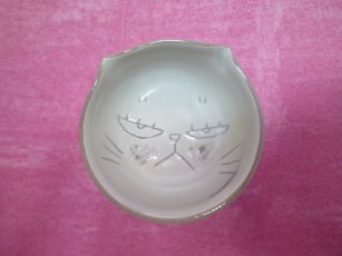 「松風直美」さんのネコさん 2012年7月に東京谷中にある「ギャラリー猫町」で開催された 松風直美さんの個展「猫のお茶会」から連れ帰ったねこさんです。 ねこさんのお顔が描かれた小さな小鉢。ちょん耳が良〜い感じ(=^m^=)