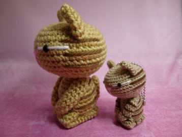 「まるみ」さんのネコさん 2013年11月に東京八王子で開催された「アートムーチョ」から連れ帰ったねこさん。 あみぐるみで手作り猫雑貨を制作されています。 以前連れ帰った黒猫さんの茶トラちゃんバージョン。この表情がたまりません(=^m^=)