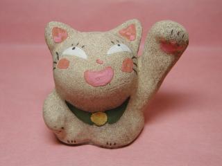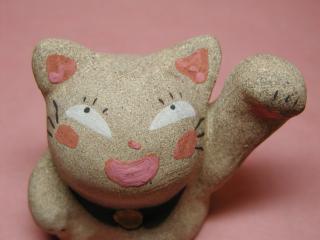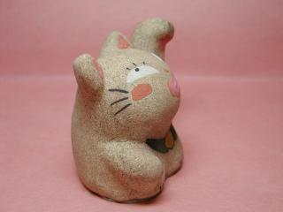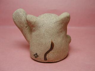 「松風直美さん」のネコさん 2002年4月、猫町さんで開催された松風さんの個展「猫畑収穫祭」から 連れ帰ったネコさんたちです。 すこ〜しにやけたお顔付きに、大きな手。 いつでもどこでも幸せを招いてくれること間違いなしっ! このネコさんの生みの親、松風さんご本人はこんな感じ(*^m^*)