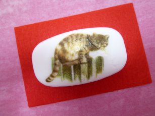 「ぴんきー」さんのネコさん 2015年9月に愛知県瀬戸で開催された「来る福招き猫まつり」から連れ帰ったねこさん。 ぴんきーさん手書きのせっけん。ようじ入れも頂きました。ありがと〜。