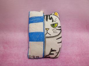 「坂本愛理」さんのネコさん 東京・高円寺にある「猫の額」から連れ帰った濱猫さんこと坂本愛理さんのねこさん。 裏側がポッケになっていてカードなどを入れることができます。