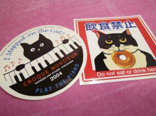「松下カツミ」さんのネコさん 東京・千駄木にある「ギャラリー猫町」で開催された松下さんの個展 「ねこ・ネコ・猫でいっぱい!」から連れ帰ったねこさんのステッカー。