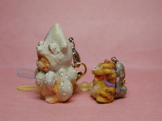 「播和比古さん」のネコさん 2002年5月プランタン銀座の猫展から連れ帰ったネコさんです。 播さんのかぶり物ネコさんは、むふふ(*^m^*)もの。 イカのかぶり物ネコさんは、ねこ丼@旦那さんが一目惚れし連れ帰りました(*^m^*) ビリケンさんを背負ったネコさんは、ねこ丼好み(*^m^*)