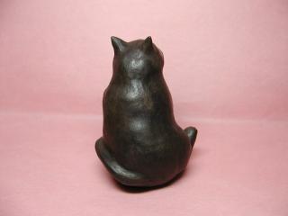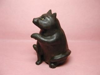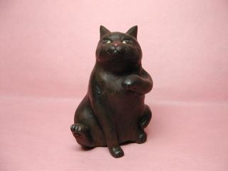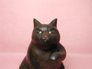 「伊藤諭吏子さん」のネコさん ユリリンさんこと伊藤諭吏子さんのネコさんです。 ちょっとちょっと〜って感じの手つき、ちょっろっと上げた足、 ぷっくらしたお顔。今にも動き出しそうな生命力のネコさんです。