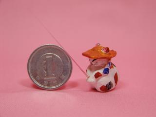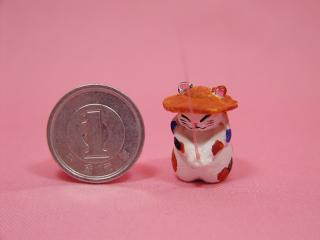 「夜猫さん」のネコさん この大きさ分かりますか?1円玉と同じ大きさの釣り猫さん。 頭には麦わら帽子、首には手ぬぐい。 やっぱり釣りはヘラだよねぇ〜(=^m^=)