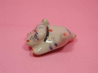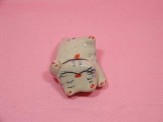 「深井和子さんさん」のネコさん 2002年6月に「ギャラリ〜猫町」さんで開催された器展から 連れ帰った箸置きのネコさんです。 ちょっとおじさんぽいお顔がハマります(=^m^=)