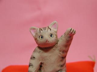 「小島美知代さん」のネコさん 2002年6月「ぎゃらり〜猫町」で開催された小島美知代さんの個展から 連れ帰ったネコさんです。ネコのお医者さんがテ〜マということで、 お医者さんや看護婦さんに扮したネコさんが所狭しと展示されていました(o^^o) でも、あえて普通の招き猫さん。なんてへそ曲がりなんでしょ〜σ(^◇^;)