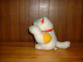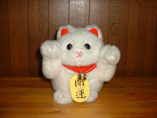 ライオンさんが、4,5年前にUFOキャッチャ〜でゲットされたという招き猫のぬいぐるみです。