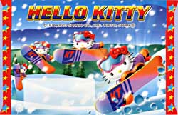 「にゃーにゃー村村長さん」からの頂き物 長野県限定、スノーボーダーキティちゃん。 ご自身もボーダーのにゃーにゃー村村長さんから頂きました。 ありがとうございますっ! ガンガンにトリックを決めるキティちゃんが描かれています(=^m^=)