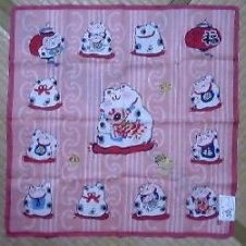 布施渥さんのハンカチと、ねこさんの和風スリッパ