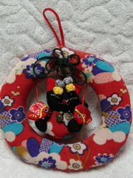 クリスマスに飾ってもいいし、素材がちりめん、柄が和風なのでお正月でもいけますね♪