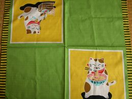 福岡限定とんこつキティちゃんと、福岡空港から連れ帰ったねこさんのハンカチ。