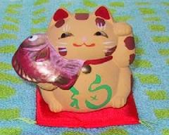 鎌倉で購入された張り子猫さんと、鈴になってる鯛招き。