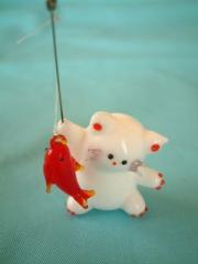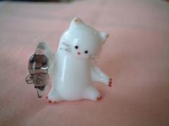 青と白のコントラストが美しい丸猫さんと、ねずみを捕まえたネコさん(*^m^*)