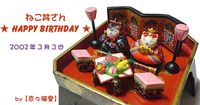 「ぴ〜さん」からの頂き物 やっぱり、お誕生日って良いですね〜(o^^o) こ〜んな素敵なバ〜スティ〜カ〜ドをぴ〜さんからプレゼントして 頂きました。ぴ〜さん、ありがとうございます! 2002年、猫町さんで開催された猫雛展に出展されていた猫雛さん。 こんなところで再会できるなんて(≧∇≦)