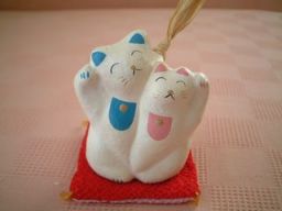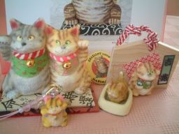 プランタンの猫展からの七夕猫さんと、鎌倉明月院近くのお店からのラブラブ招き猫さん。