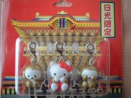 那須限定のナスキティちゃん(=^m^=)那須だから茄子?なぞ。。。(=^m^=) 栃木県限定いちごキティちゃんと、日光限定東照宮キティちゃん。 見ざる、言わざる、聞かざる。。。の言わざるキティちゃん(=^m^=)