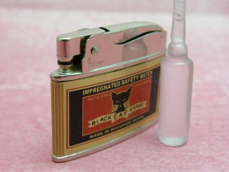 黒猫さんが描かれたオイルライター。頂き物です。