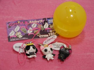 にゃんぱいあストラップ 2010年8月に発売されたタカラトミーアーツのガチャポン。 にゃんぱいあA、にゃんぱいあB、にゃてんしさん、独眼流まさむにゃ、茶々丸の全5種類。