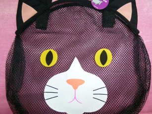 あみあみバッグ ねこさん顔のあみあみのバッグ。 バッグ自体は大きめですが、入れ口は耳と耳の間が開いているだけなので あまり大きなものは入りません(^^ゞ