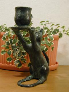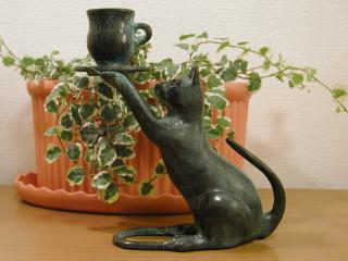 ろうそく立て にゃんこが持っているコーヒーカップの中にろうそくを立てられるようになっています。 心が疲れた時には、ろうそくの明かりで癒すっていうのは如何でしょう。