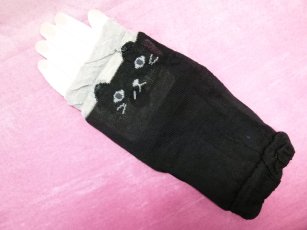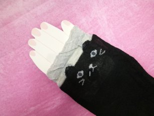 日除けアームカバー 百均で見つけたねこさんの日除けアームカバー。 手首まで保護してくれます。 私の手のせいでしょうか。つけてみると、ちょっとねこさんの顔が横に寄っちゃいます。