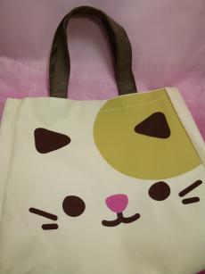 手提げ 百均のねこさん手提げ。 小さめですが、厚手の生地でしっかりしたつくり。マチもあるので、思った以上に使えます。