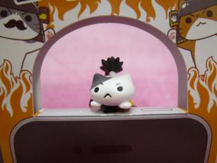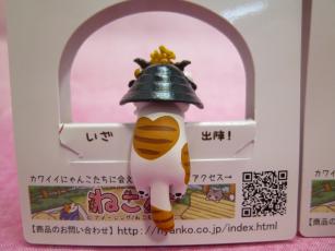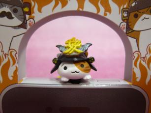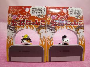 イヤホンジャックカバー 高速のサービスエリアでお土産として販売されていたねこさん型のイヤホンジャックカバー。 発売されているのは「武将にゃんこ」5種。にゃおえ(直江兼続)、にゃんげん(武田信玄)、 さにゃだ(真田幸村)、まにゃむね(伊達政宗)、のぶにゃが(織田信長)、と「忍者にゃんこ」1種。 残念ながら、にゃおえ、のぶにゃがと、忍者にゃんこしかありませんでした。 実際、可愛すぎて、落としてしまったらと思うと使えません(-_-;)