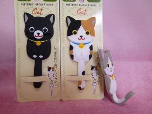 フック ねこさんモチーフのフック。ねこさん自体がマグネットになっていて、 貼り付けられます。手やしっぽを曲げて鍵などが掛けられます。 百均です。