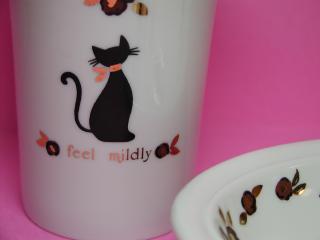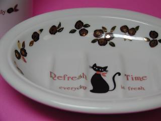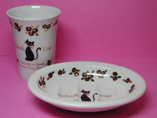 「カップ」と「ソープディッシュ」 ツンとすました黒猫とバラの花がバッチグ〜(古い!) ねこ丼@旦那さんのお母さんからプレゼントして頂きました。 こういう小物があるだけで、何か寂しい洗面所もグ〜っと明るくなりますね。 でも、石鹸を置いてしまうと、黒猫さんが見えなくなってしまうのよね〜(^_^;)