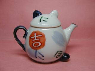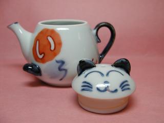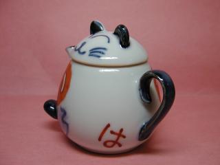 お醤油差し なんともユ〜モラスなお顔のネコさんの醤油差しです。 あっ、別にお醤油でなくても良いとは思いますが・・・。 ん〜?下の方から出てるのは足なのかな?いまだに不明(^^ゞ