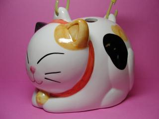 にゃんこ蚊取り むふふ、私の大好きな三毛ちゃん模様のネコさん蚊取り。 で〜っかいまん丸顔とずんぐりむっくりの身体がめっちゃキュ〜ト。 結構大きいので、かなり目立ちます(*^m^*) お義母さんからのプレゼントして頂きましたぁ。幸せ〜。