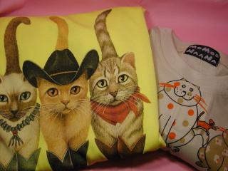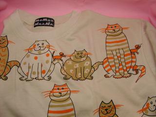 ねこさんTシャツ ネコさん勢揃いのかわいいTシャツ。 婦人服「クーちゃんのお店」のクロさんからプレゼントして頂きました。 帽子にブ〜ツの猫ちゃんがお気に入り(=^m^=)