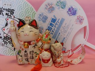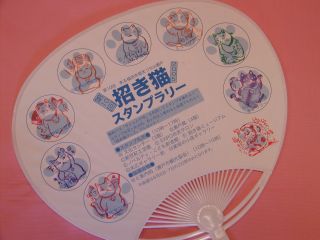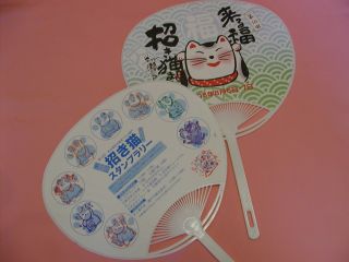 うちわ 2005年8月に愛知県瀬戸市で開催された「招き猫まつり」から連れ帰ったねこさんです。 毎年、招き猫まつりで開催されている招き猫スタンプラリー。 2005年は第10回年記念ということで、うちわが台紙になっていました。 全8カ所の札所のうち6カ所以上のスタンプでクジに参加できます。 左下の写真はスタンプラリーで当たった招き猫さんたち。