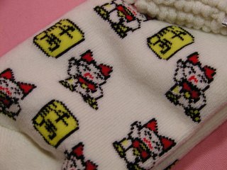 くつした お友達からプレゼントして頂いた招き猫さん柄の靴下&足首ウォ〜マ〜。 少し厚手の生地で寒い冬も暖かく過ごせそうです。